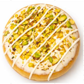 A soft and fluffy donut filled with rich Arabic ice cream, topped with a smooth layer of Kinder chocolate and generously sprinkled with freshly crushed pistachios. A perfect balance of creamy, crunchy, and indulgent flavors in every bite.